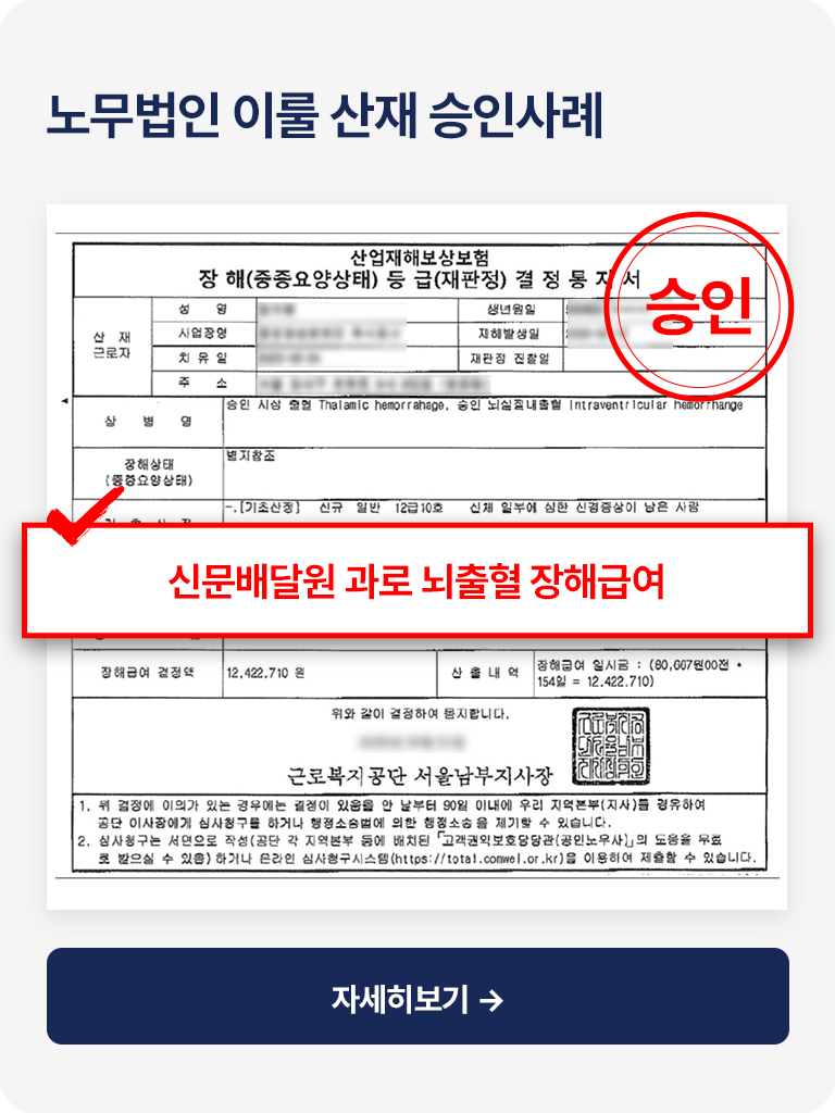 일반 산재(근로자의 재해로 인한 부상, 질병, 장해, 사망)의 경우 산업재해보험보상법에 근거하여 보상이 이루어지지만,